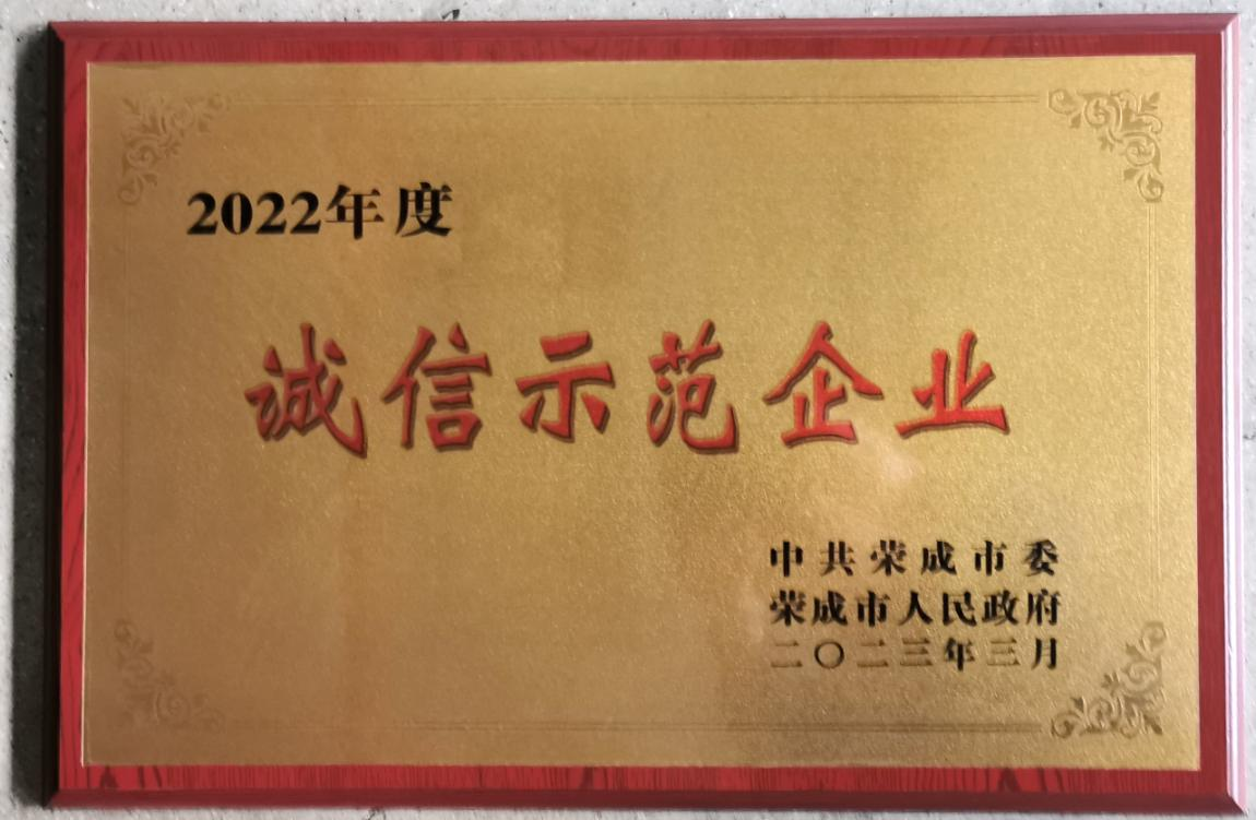 榮成市市長鄭躍文為2022年度誠信企業獎獲得單位頒獎。